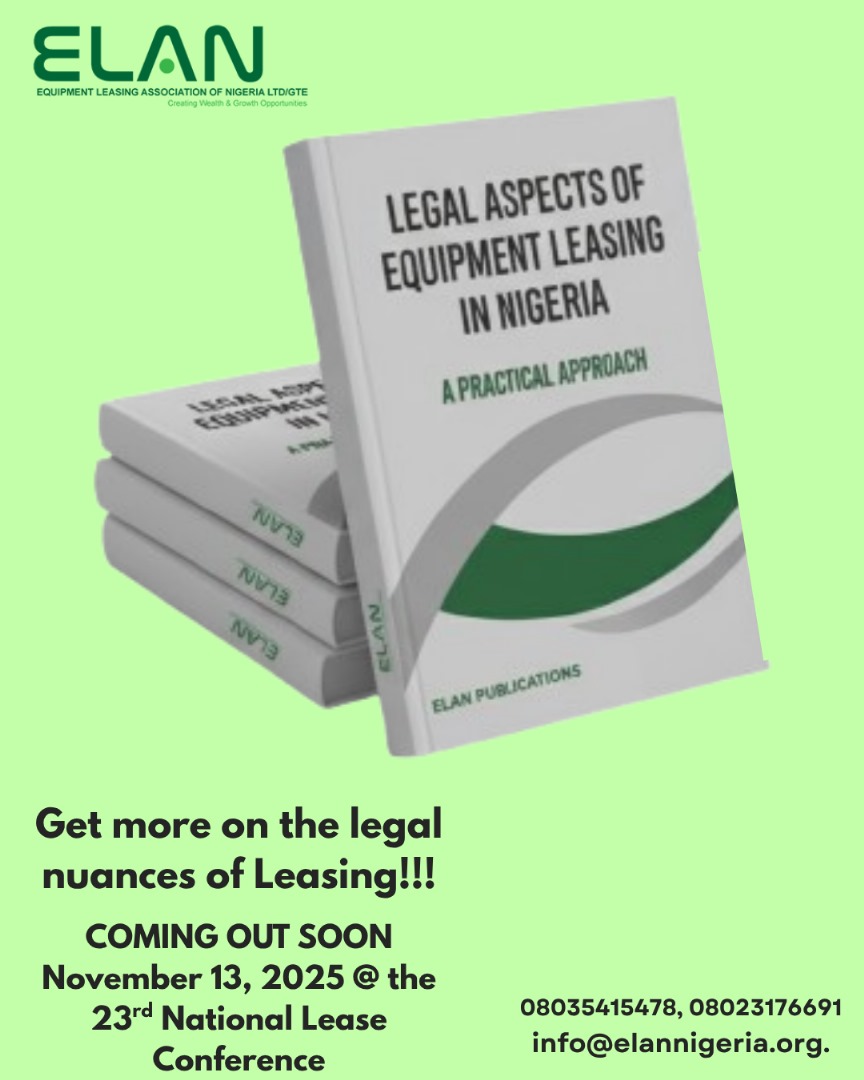 COMING OUT SOON!!! LEGAL ASPECTS OF EQUIPMENT LEASING IN NIGERIA: A PRACTICAL APPROACH!!!Get more on the legal nuances of leasing!!!… October 20, 2025 0 Comments